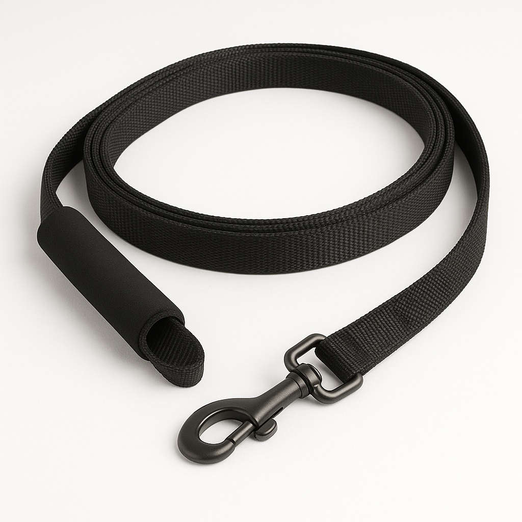 Heavy-duty dog leash crafted from thick nylon webbing. Length: 2 meters, width: 2.5 cm. Equipped with a strong zinc-alloy swivel clip to prevent tangling and a padded EVA foam handle for secure and comfortable control. Tested to withstand pulling forces up to 80 kg, this leash is suitable for medium to large dogs. Ideal for daily walks, training, or outdoor activities.