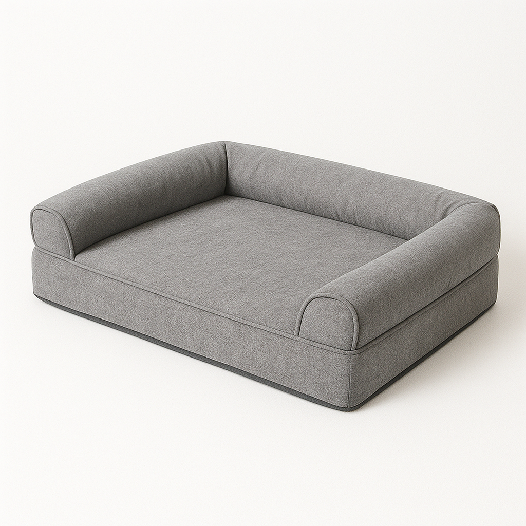 Orthopedic bed filled with memory foam to provide excellent support for pets’ joints and muscles. Dimensions: 70 x 50 x 10 cm. Covered with a removable polyester fabric that is machine-washable for easy maintenance. The bottom surface is anti-slip, ensuring stability on tile or wooden floors. Designed to improve sleep quality and comfort for pets of all ages, especially older animals with joint issues.